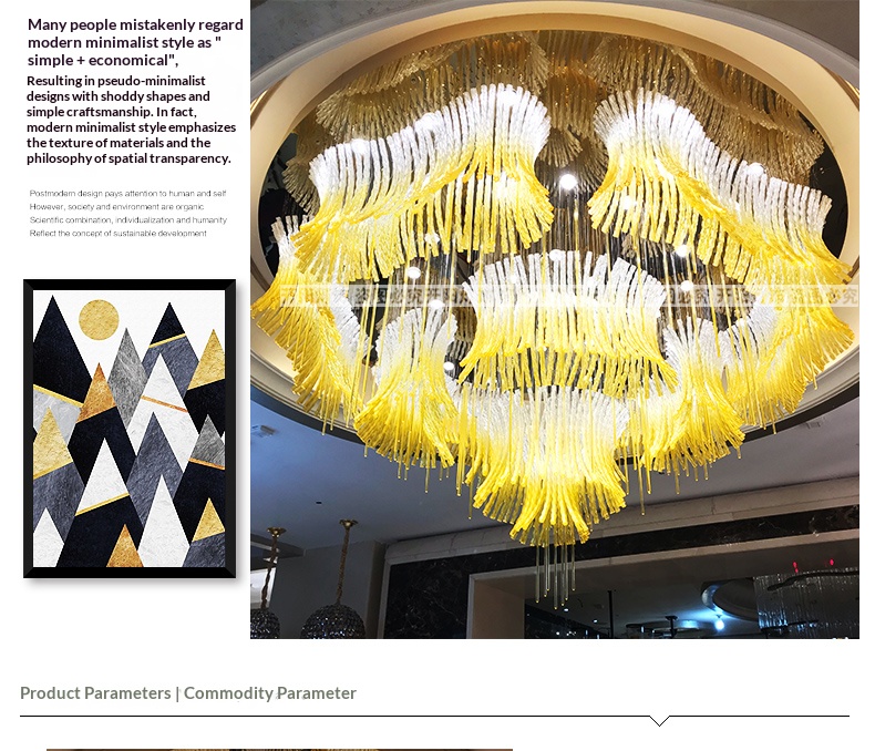 Our luxury handcrafted chandelier draws inspiration from the fluid movement of ocean waves and the majestic silhouette of mountain ranges. The cascading layers of hand-blown glass tubes create a dynamic, organic shape that dances with light, casting a warm, golden glow that transforms any space into a sanctuary of opulence.